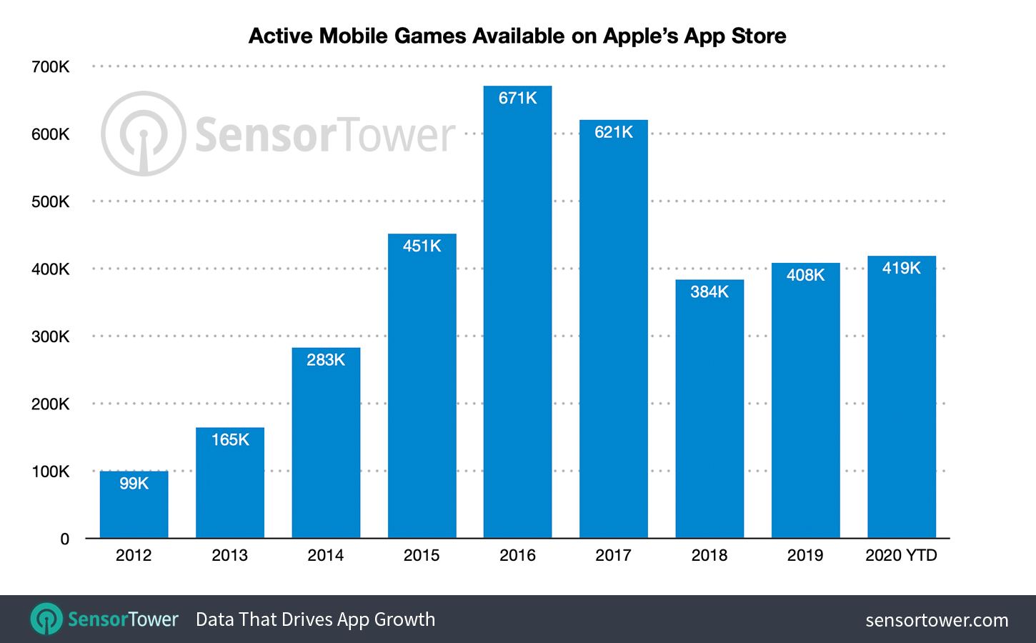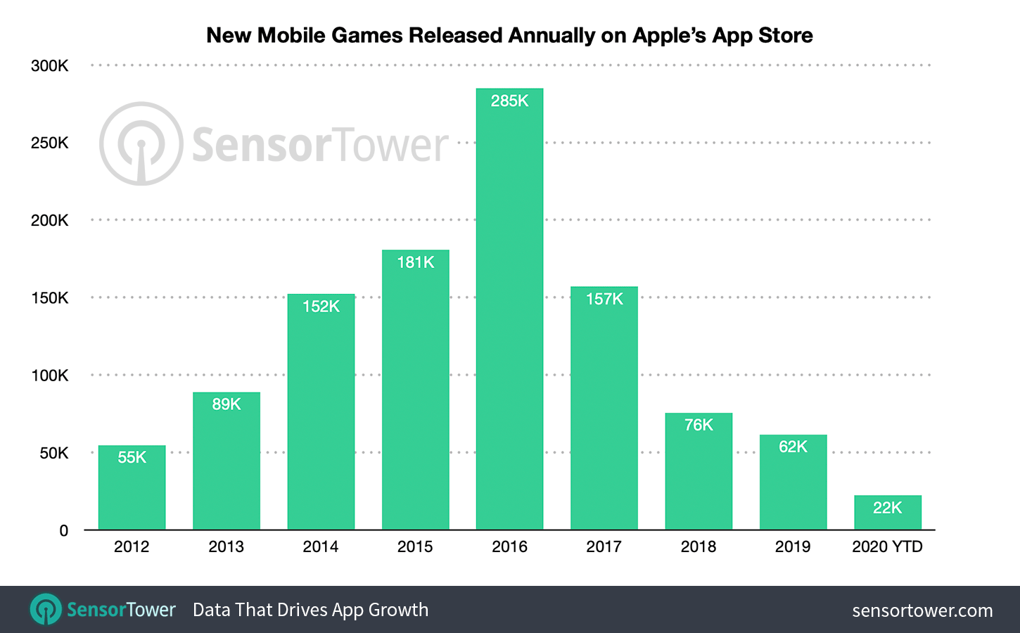 In the last few years, the mobile games market has changed radically. The amount of new games entering the market has plummeted and there have been fewer new games entering and sustaining their position in the top grossing charts.