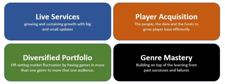 1. Strengthen Live Services and performance marketing to stabilize its existing portfolio, while continuing to drive growth through new releases