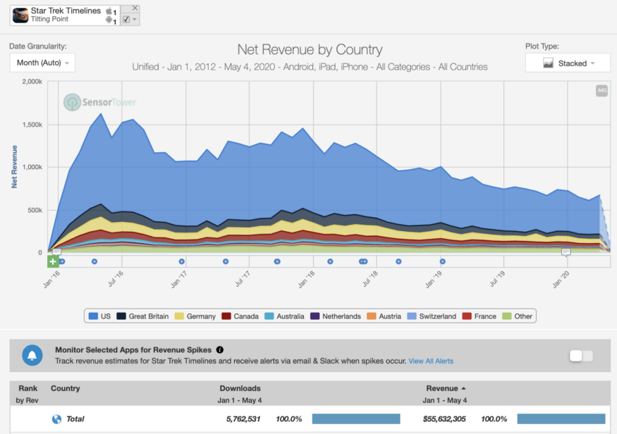 Star Trek Timelines was sold to Tilting Point but has seen good success! According to Sensor Tower, the game achieved 5.7M downloads and over $55.6M in net revenue on mobile.