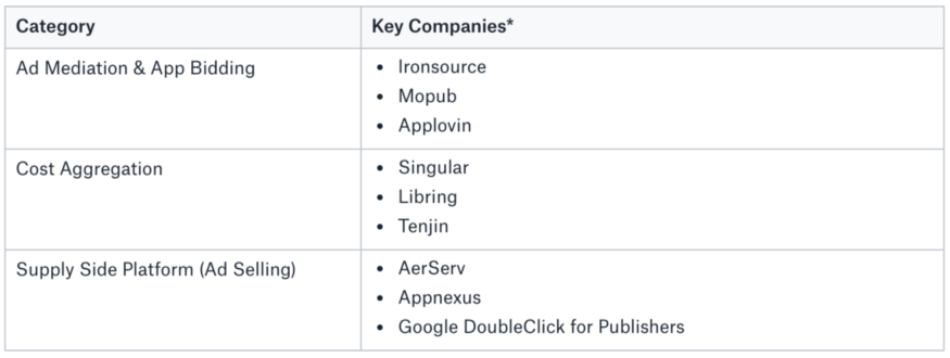 Ad Monetization Categories and Key Companies