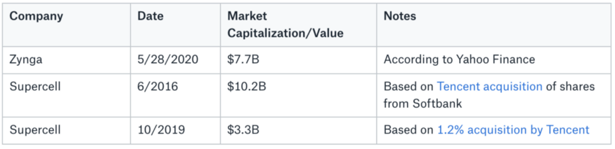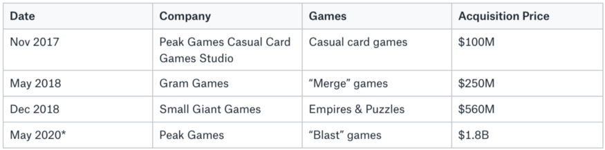Recent Zynga Acquisitions: