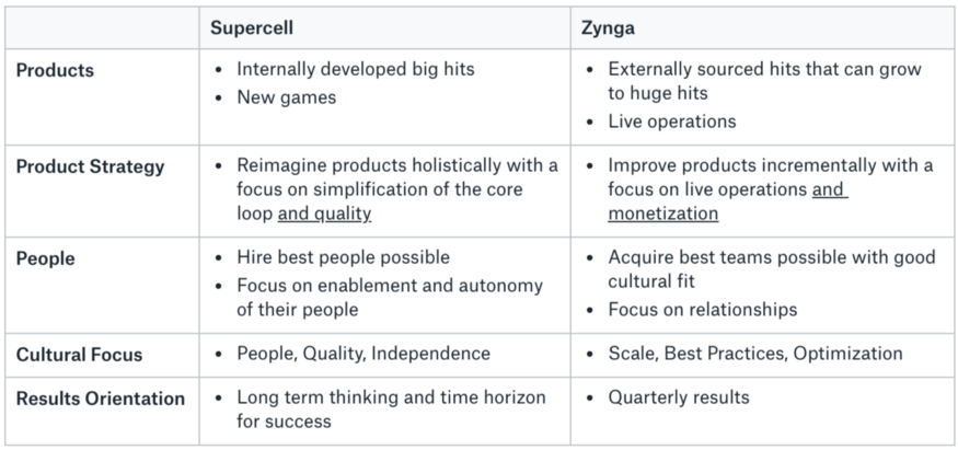 Strategically and organizationally, both Supercell and Zynga have very different approaches.
