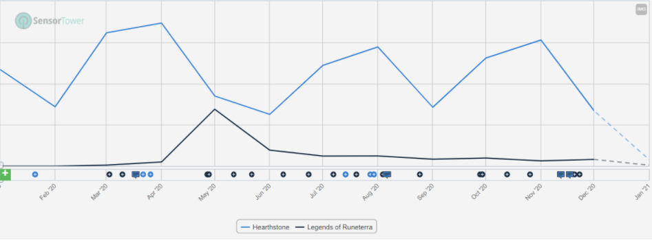 Legends of Runeterra has been out on mobile for almost a year now. At launch Runeterra clearly cannibalized Hearthstone but has since then dwindled down indicating that the chosen valiant monetization model is not working. And again, it’s not the execution as Runeterra received Apple’s Game of the Year recognition.