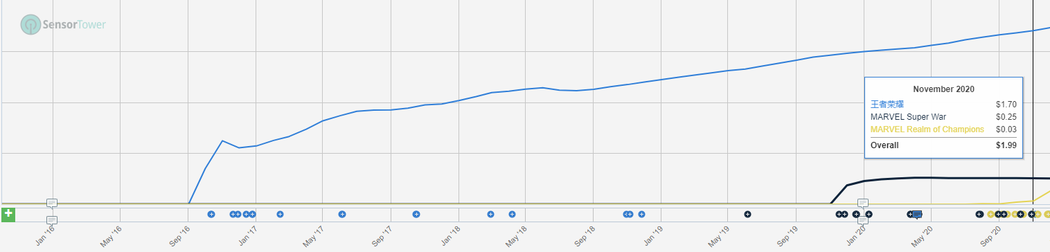 The RPIs (rev per install) for the Arena of Valor outside China are quite low, despite slowly increasing over time as the download volume dwindles down. The RPIs for Marvel Super War were alarmingly low - as were the installs that reached only 15M to date. Kabam’s Marvel MOBA (more of a brawler) is yet in soft-launch but given these examples, it’s hard to see that game reaching the lofty expectations.