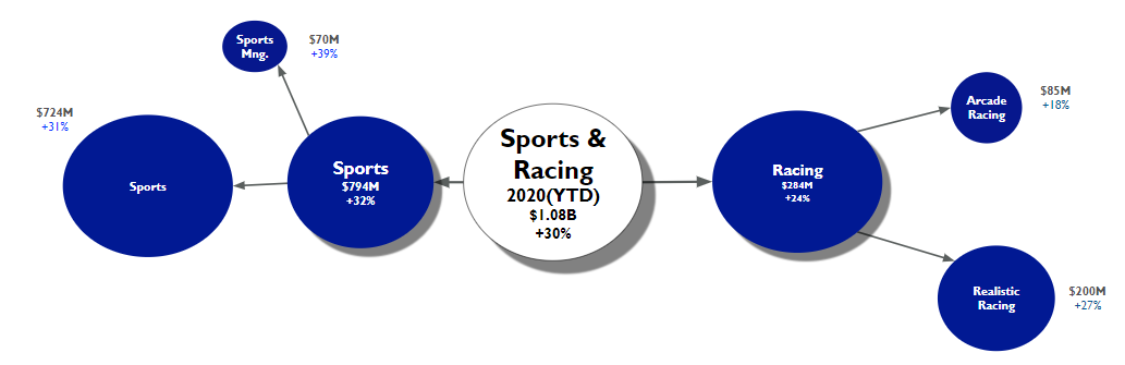 The sports category is divided into two genres: Sports and Racing. The chart above shows how the Sports genre faired.