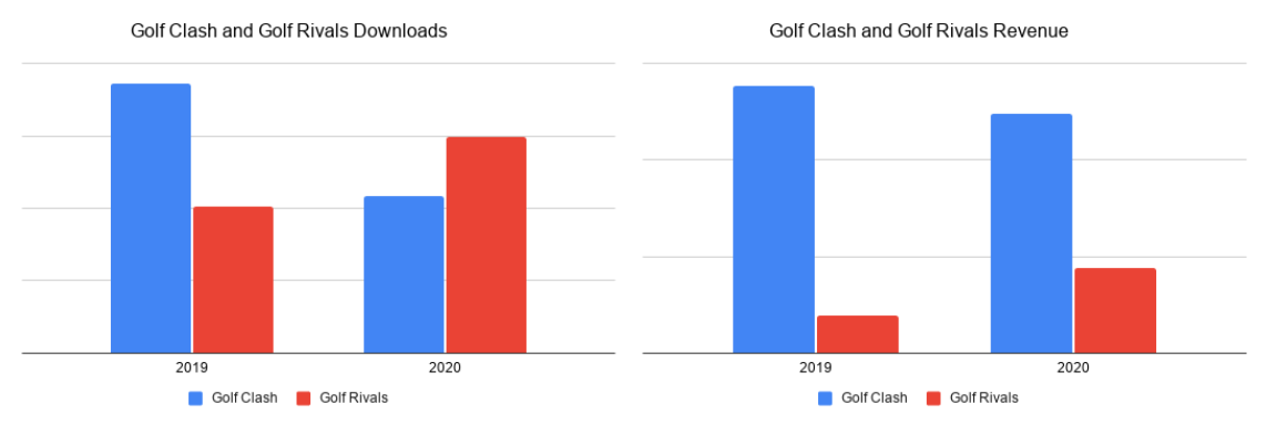Win. Bullseye! We did see further erosion of Golf Clash’s market share, but it still retained the top position in 2020. Games like Golf Battle, Ultimate Golf appeared on the scene competing for the same pie.