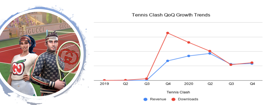 2020, was a very good year for Tennis Clash as it managed to grow it’s revenue by +331% YoY and downloads to +104% YoY.