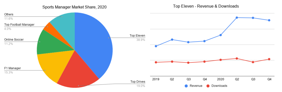 2021 Prediction #2: Top Eleven will continue to be the market leader and not face any significant reduction in its market share from other football manager games.
