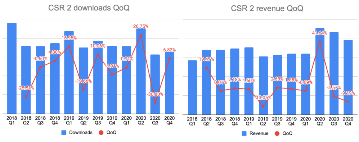2021 Prediction #2: It seems that nobody is even close to challenging the leader, especially in terms of f2p monetization. CSR2 will remain the sub-genre leader with more than 40% of market share in 2021.