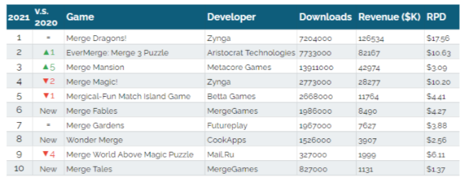 Four out of 10 puzzle games launched in 2021 were Merge Games. Just wow…
