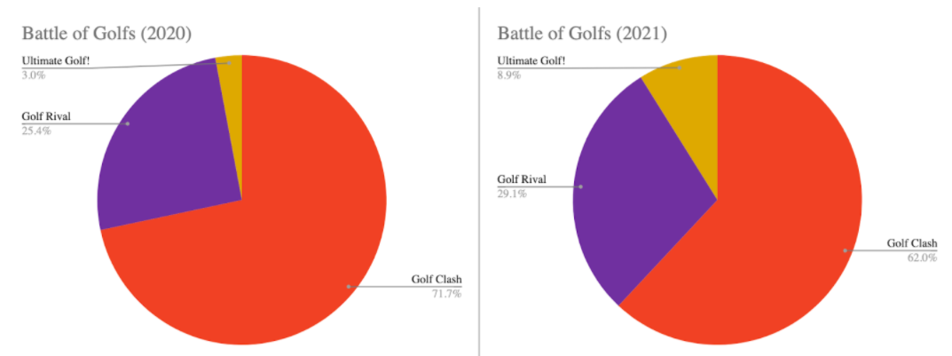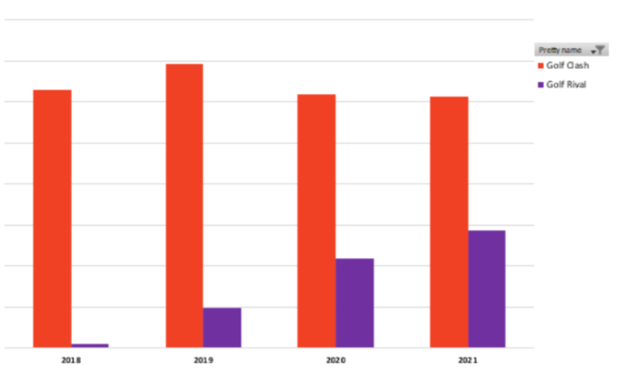 2022 Prediction #2: Zynga’s Golf Rival and Miniclip’s Ultimate Golf will come closer to EA’s Golf Clash and close the revenue gap, but Golf Clash will still stay the #1 golf game.