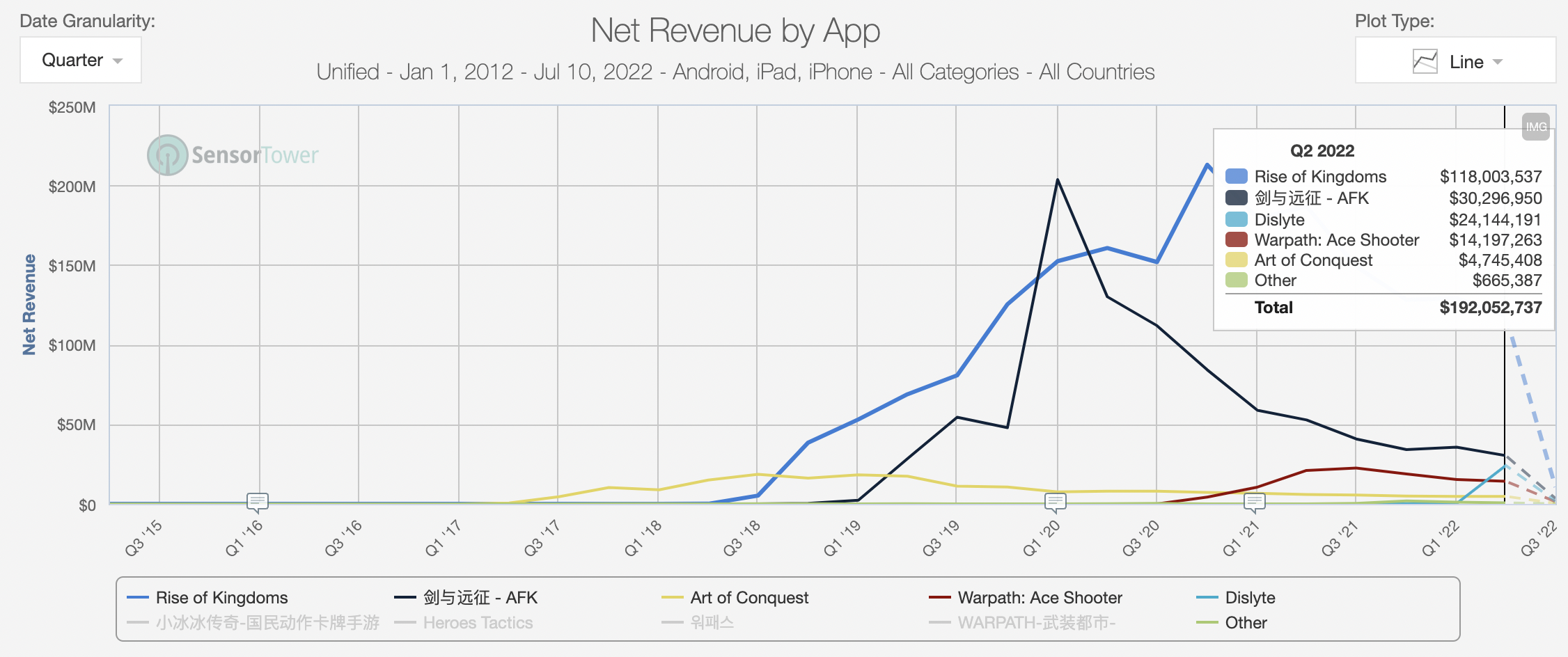 It’s been now a few years since Lilith has scaled mega-hits. After AFK Arena Lilith released another strategy game, Warpath, a solid top 100 game, and Farlight 84, a very impressive-looking shooter that is yet to scale.