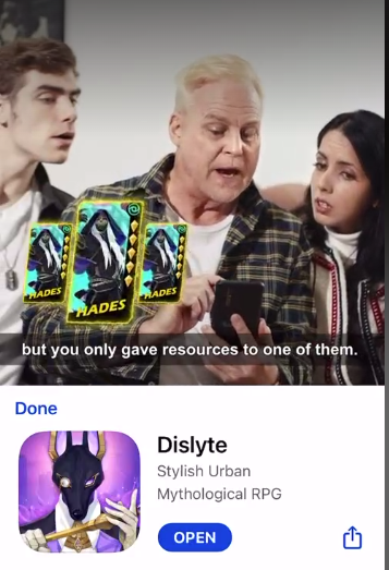 Similar to past Lilith games, Dislyte used a lot of live action creatives in their paid media placement, first with a focus on raising awareness and later on improving retention by providing game tips. These creatives usually feature actors across different age groups showing off their in-game achievements in various everyday scenarios (e.g. gym, home, meeting your new girlfriend’s dad, etc), which can be slightly cringey but fun to watch.