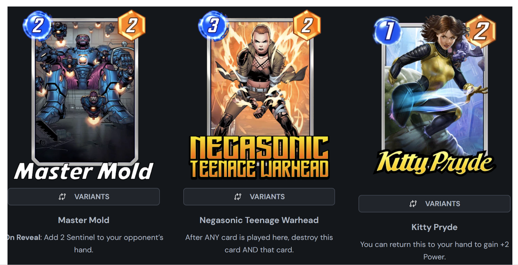 Variants are a major draw for players in Marvel Snap and are often included in in-app purchase packs. The Season Pass also offers a unique variant that can only be obtained through that specific Season. During holidays, the game also releases special holiday variants for specific Cards.