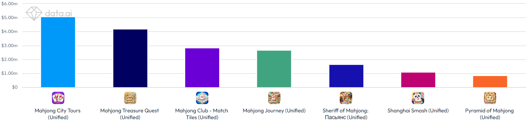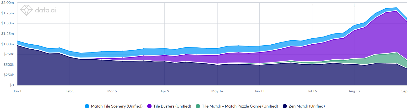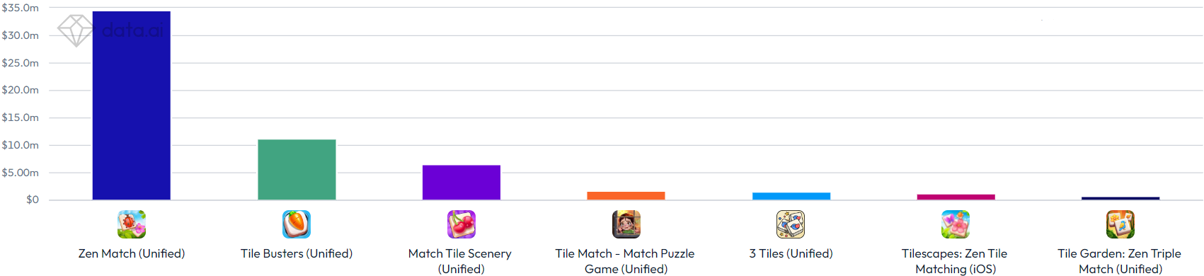 Revenue trend for the top Tile Match games since the beginning of 2023.