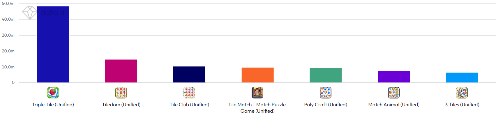 Most downloaded Tile Match games over the last 52 weeks, iOS & Android, Worldwide.