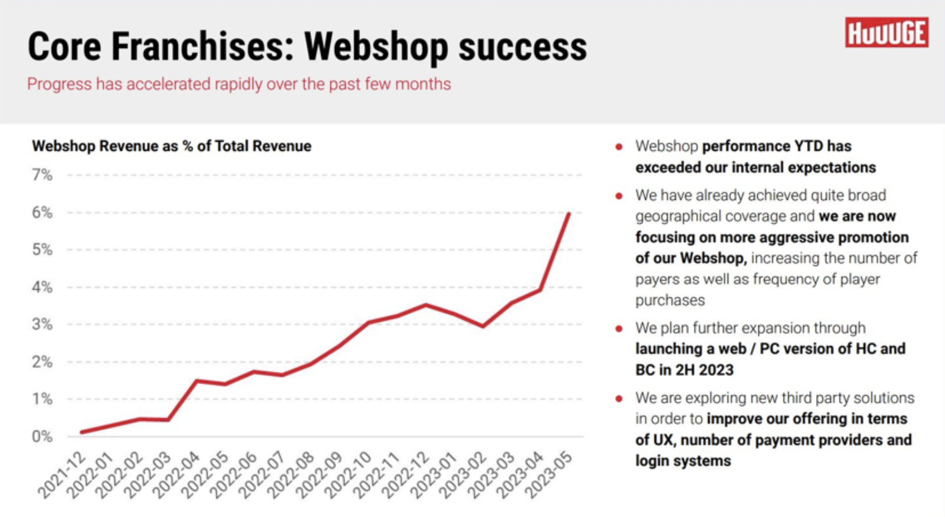 Webshops are rapidly becoming a meaningful source of revenue. According to our sources (management of top-grossing franchises), up to half of the revenue of a game can these days come through a webshop.