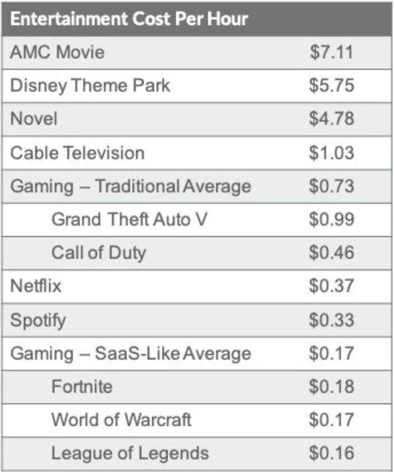 Gaming is a logical cost efficient choice for most entertainment per dollar. Here’s what’s missing from the list: social media and streaming. Time spent on YouTube, TikTok, Instagram, Snap, and Twitch has grown exponentially and is eating away from other sources of entertainment. Gaming included.