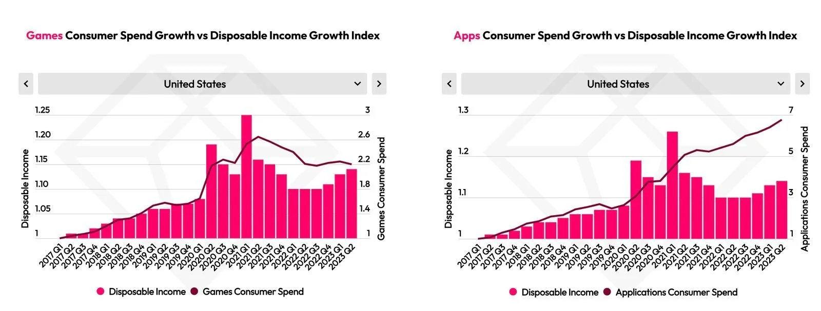 1. As consumers' disposable income decreases, they prioritize spending on apps that for many have become essential utility services instead of just entertainment products. Spotify, Tinder, and Netflix subscriptions are almost inelastic. Unlike purchasing battle passes in your favorite shooter.