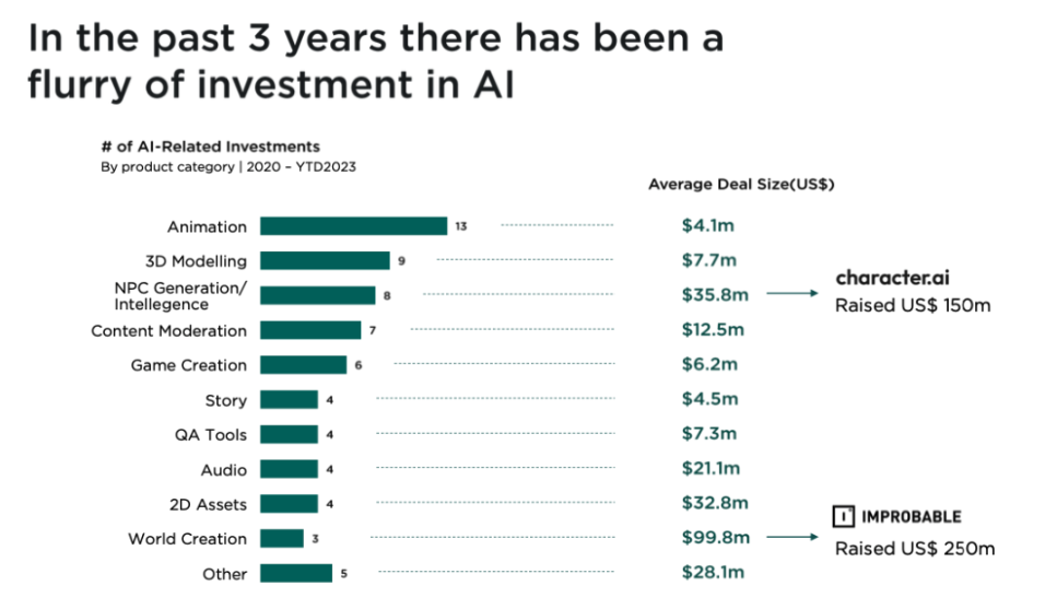Tools, tech and platforms (aka. the picks and showels) are drawing investments in gaming. This is a signal of future adaptation that is further enhances with adaptation of AI.