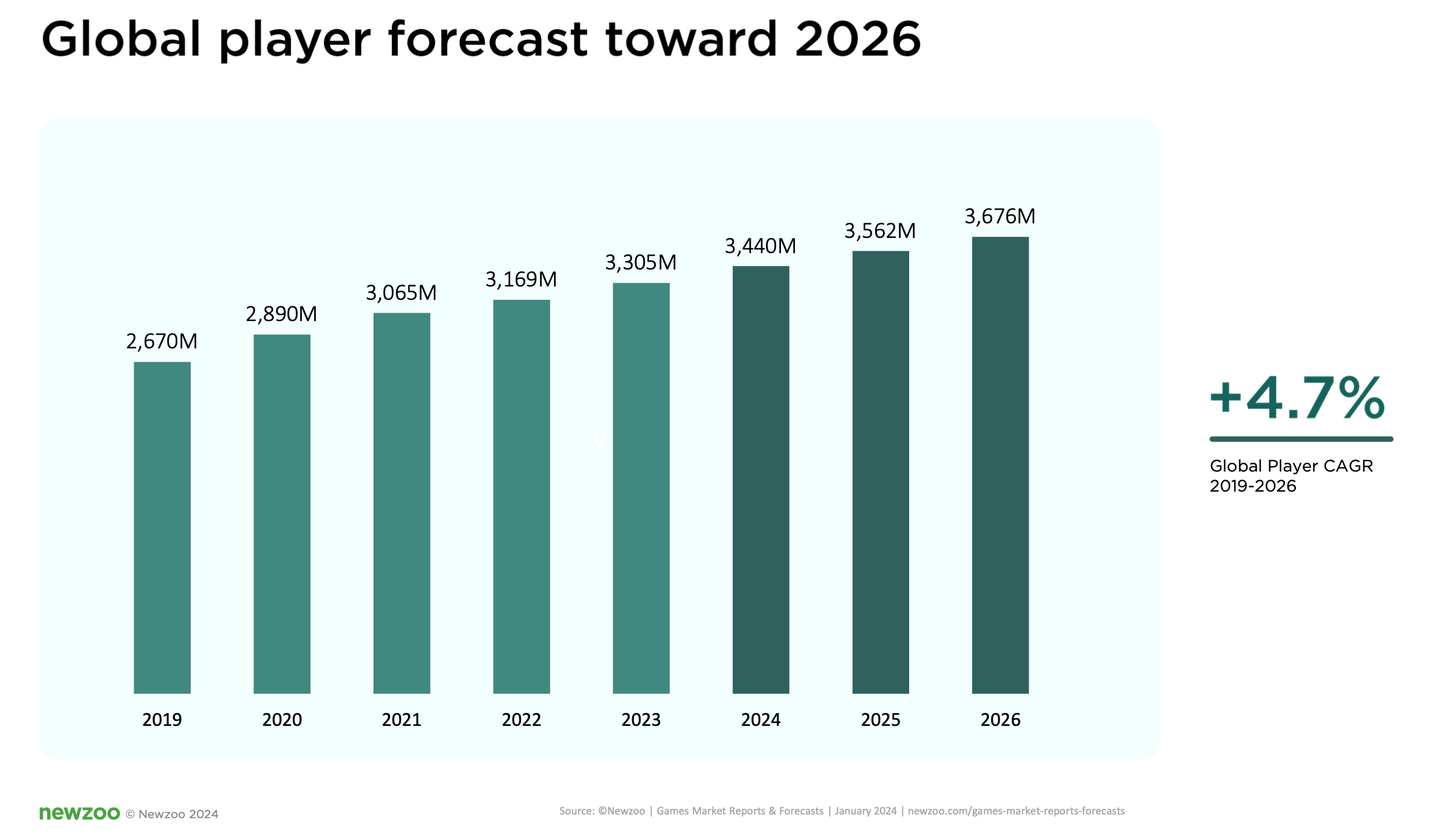 As long as the amount of players is increasing, the game industry is being pushed forward by the secular tailwinds. Source: Newzoo