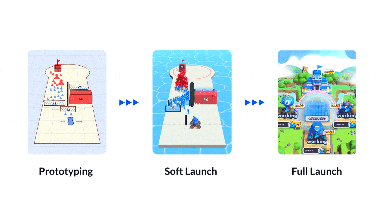 Once the prototype reaches a satisfactory stage, it undergoes a soft launch, where additional improvements are made to enhance gameplay and monetization. Voodoo's Launch Ops team provides technical and artistic assistance during this phase.