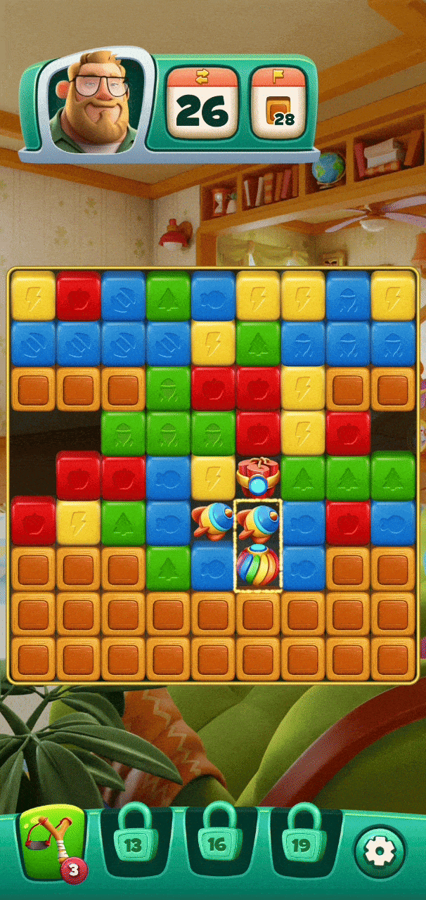 The second reason is more critical: levels in Blast games tend to get stuck more easily than in Match-3 games. Unlike Match-3, where luck plays a key role, Blast games don’t have this advantage. In Match-3, it’s common to win levels with just a few moves left, even when the odds seem stacked against you. In contrast, a bad board position in Blast games often leads to inevitable defeat, since each move only affects the blasted pieces, unlike the shifting board dynamics in Match-3. Therefore, having a power-up like Propeller that directly targets the area where players are stuck is a major advantage. Time Blast introduces Propeller as a power-up, making its core gameplay more akin to Match-3 games compared to other Blast titles on the market.