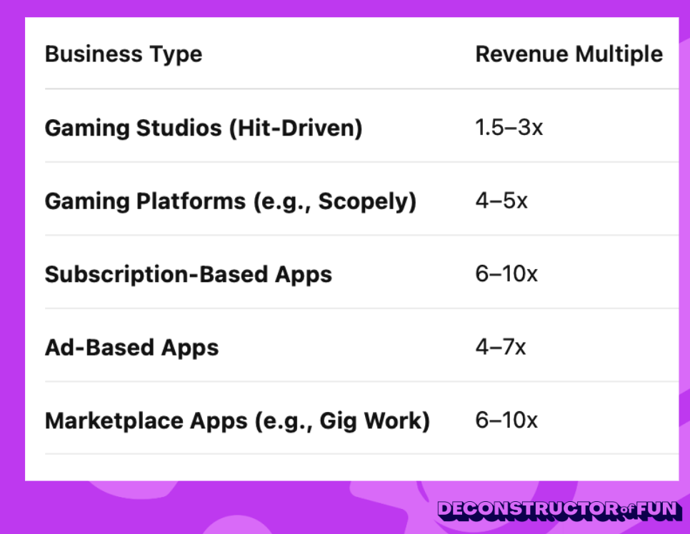 The playbooks are similar, the teams operate the same way, but apps offer better funding environments and better exit multiples than gaming content. When venture capitalists tell you gaming isn't investable but will write checks for “Duolingo meets Tinder in an Uber while listening to Spotify”, smart operators follow the money.