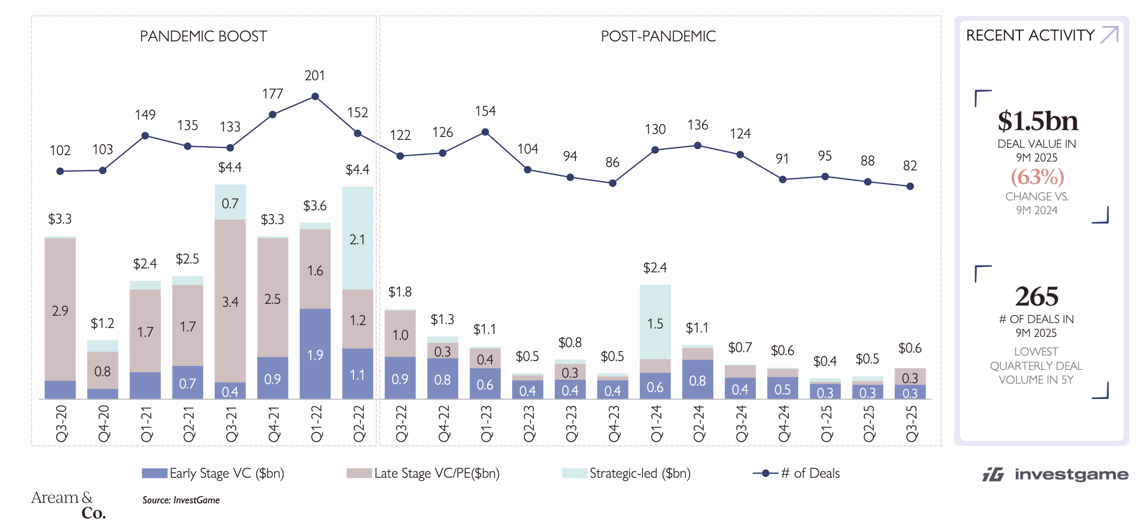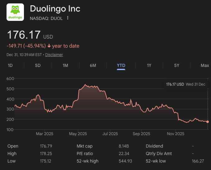 Duolingo has had a rough year in the stock market. Despite the 45% drop in valuation, the company still boasts over 8 billion Dollar market cap. Valuations like these have shifted VCs interest from games to apps.