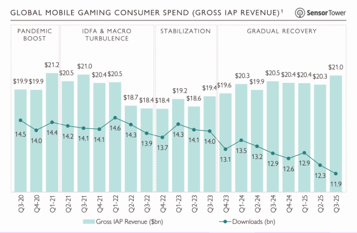 We're in a mature market where only the largest players with sophisticated LiveOps and massive UA budgets can compete profitably. Web shops will continue shifting revenue away from app stores, making the actual growth picture even murkier. For Western developers, especially, mobile has become a defensive position rather than a growth opportunity.