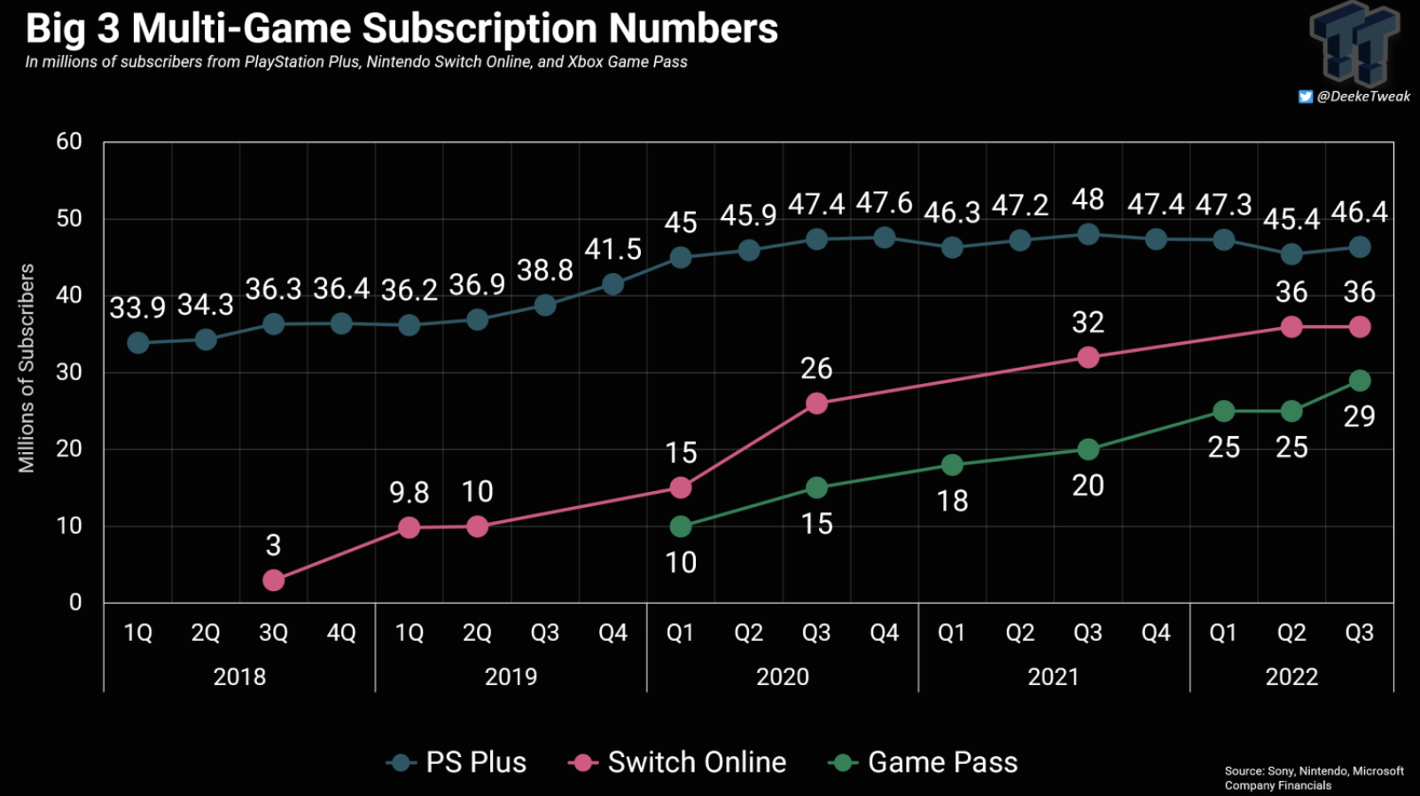 This number included the transition of Xbox LIVE Gold members being recognized as Xbox Game Pass Core subscribers. The number, if true, is not only lower than what rivals Nintendo and Sony have but also significantly lower than the goal of 100M subscribers that greenlit the project at Microsoft.