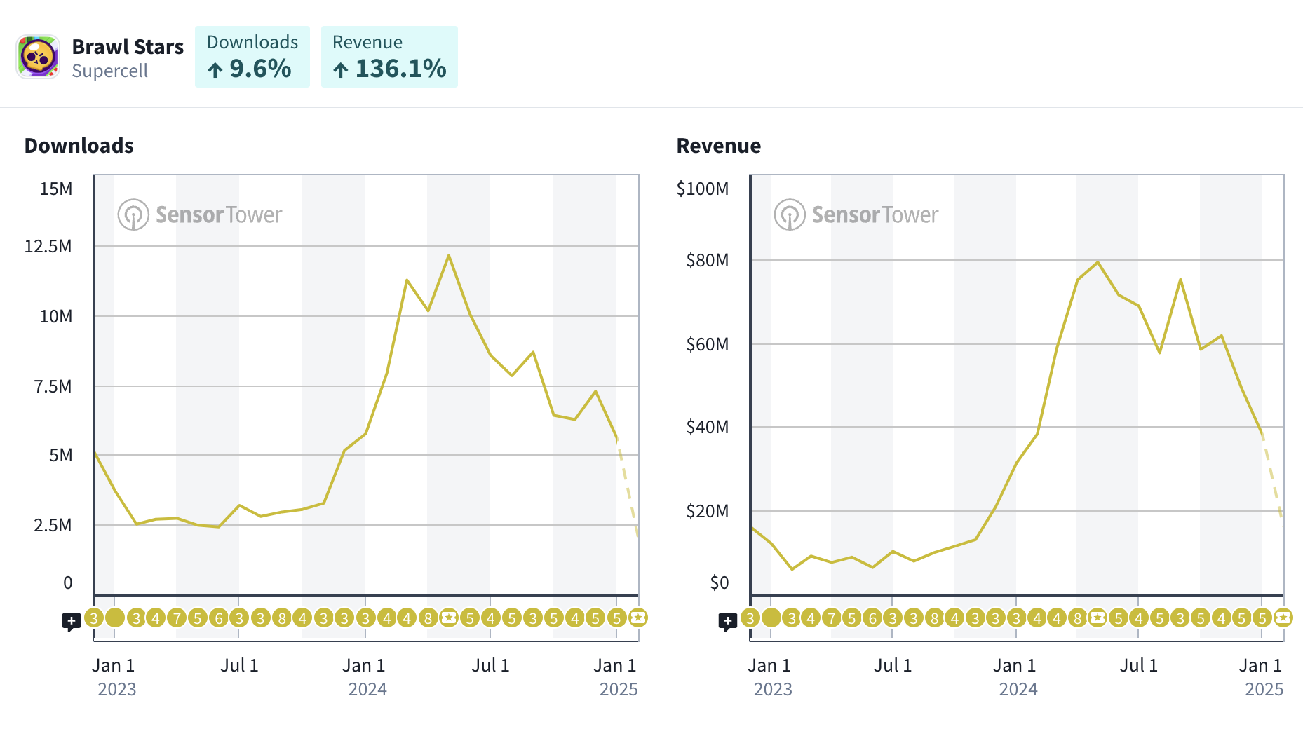 Brawl Stars has been the success story of 2024, but let’s call it what it is—the game’s growth was fueled by heavy marketing. As you can see below, with user acquisition slowing, revenue is following suit.