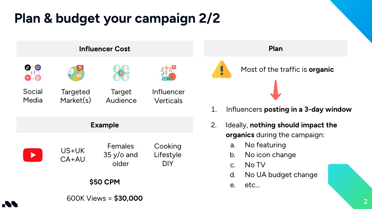 That 25% organic uplift we discussed can only reliably be attributed to the influencer campaign if there are no other changes in your UA landscape.