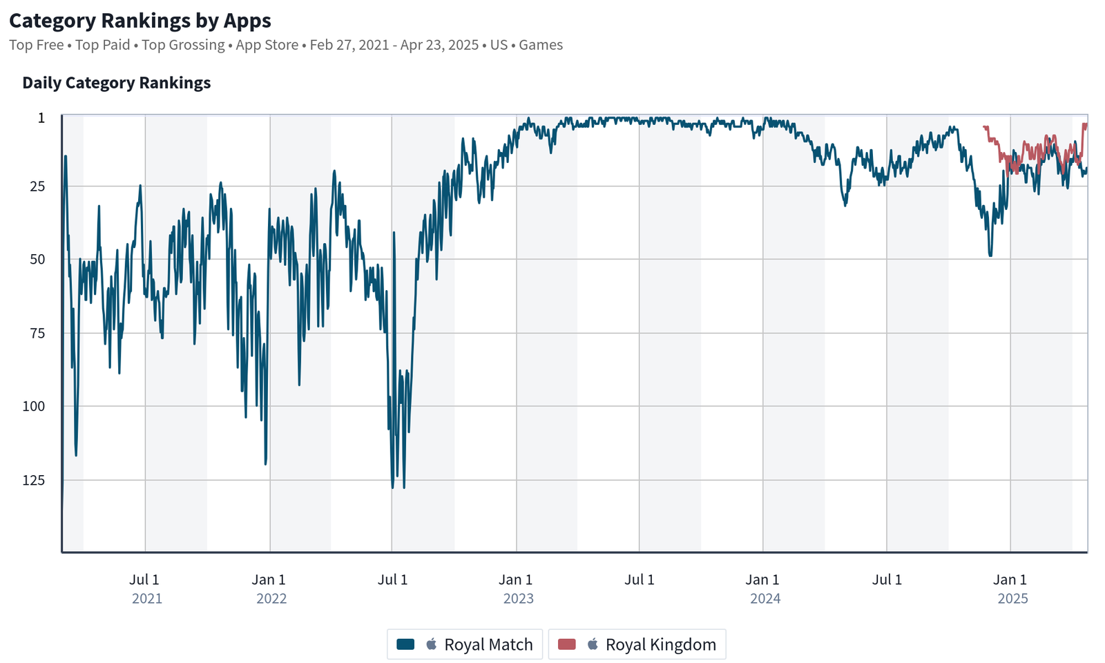 Royal Kingdom officially launched in mid-November after two years in soft launch. The celebrity campaign hit five months post-global launch, a timeline that hints at a scale-up move rather than a simple splashy debut. Royal Kingdom isn't Royal Match. It's the sibling title, and Dream Games decided it deserved its own star-studded moment.