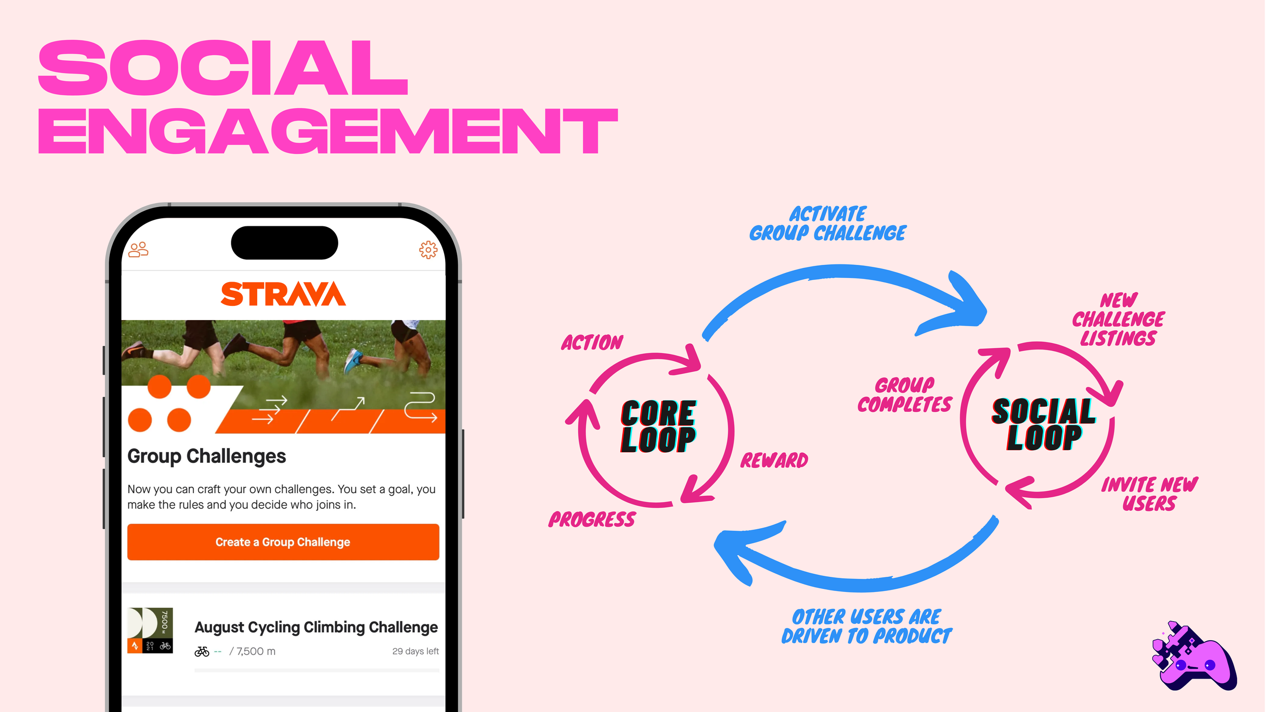 Strava creates Social Loops via Group Challenges to encourage new users to join, and accelerate the Core Loop.