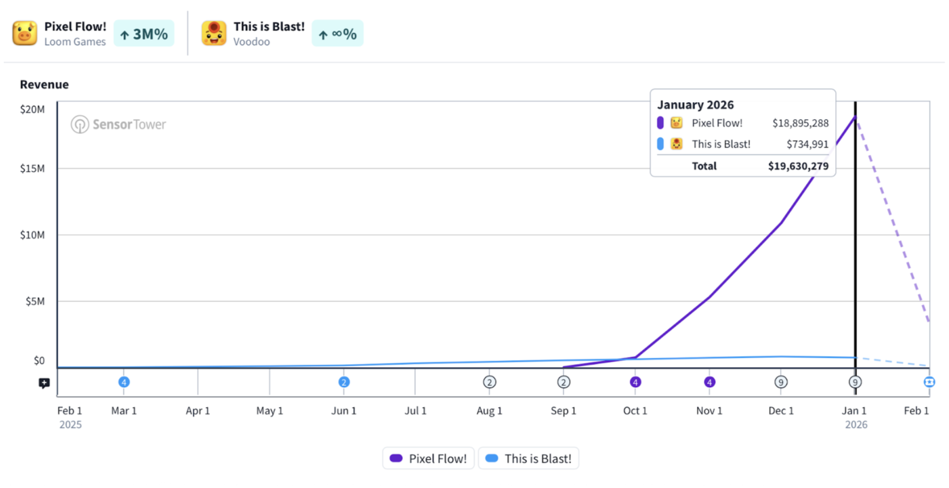 It highlights two things very clearly. First, the category works. Second, it’s easy to copy. As more studios pile in, competition will intensify, UA costs will rise, and demand will fragment. From this point on, Pixel Flow’s success will depend less on novelty and more on execution speed and operational discipline. Things are going to get crowded.