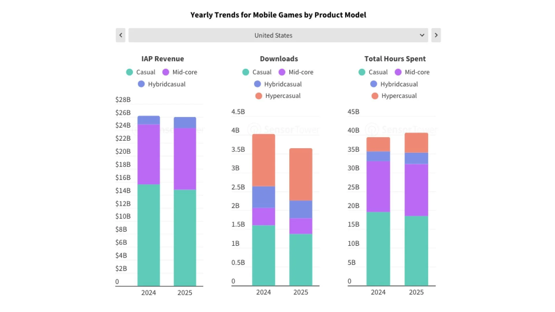 Hybridcasual Grew Revenue While Hypercasual Expanded Engagement  IAP, Downloads, Hours