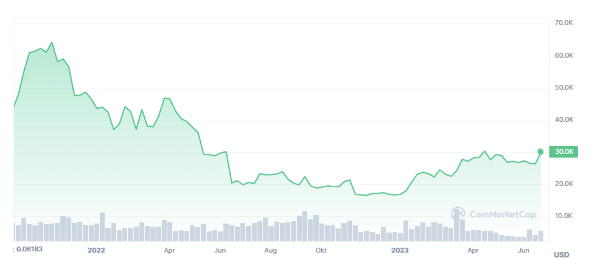 Do you want to learn about how blockchain games are doing at a glance? Just look at the Bitcoin price graph.