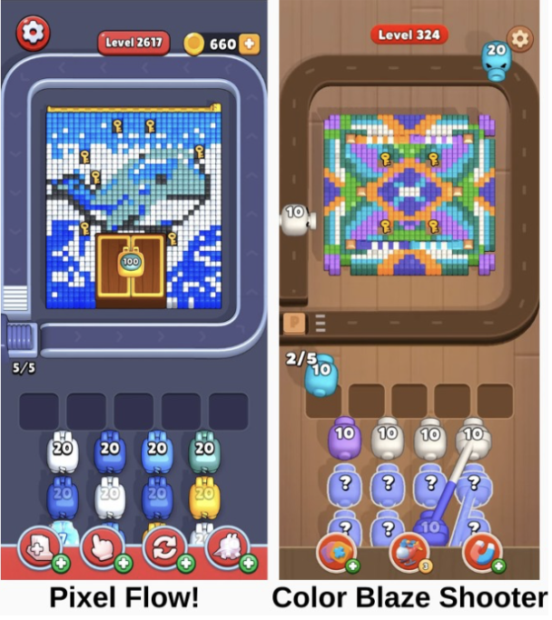 Color Blaze Shooter was a one-to-one copy of Pixel Flow and the most successful Pixel Flow clone until recently. After a significant revenue spike, it disappeared from both stores shortly, coinciding with Scopely acquiring Loom Games. Everyone asked the same question: Is this the start of the “Clone-pocalypse” where one-to-one clones can no longer survive?